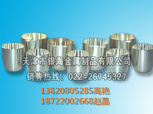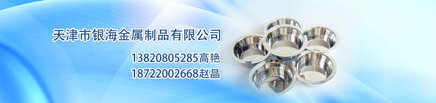 天津市銀海金屬制品有限公司主要生產(chǎn)加工鉑金坩堝、鉑金皿、黃鉑合金異形坩堝、鉑金絲、黃金坩堝、銀坩堝、銀燒杯、鐵坩堝、鎳坩堝、包鉑坩堝鉗子、瑪瑙研缽、純銀絲、純銀片、銀粉、剛玉坩堝等金屬制品,我公司的生產(chǎn)工藝嚴(yán)謹(jǐn)、技術(shù)先進(jìn)、經(jīng)驗(yàn)豐富,產(chǎn)品銷往全國各地。 公司承諾:保證產(chǎn)品價(jià)格優(yōu)惠、質(zhì)量可靠,熱情周到的服務(wù),歡迎廣大新老客戶選購我公司產(chǎn)品。